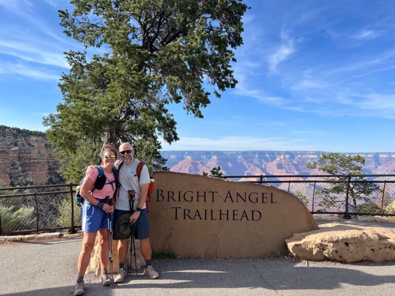 We can think of no finer way to experience the Grand Canyon than by hiking from one rim to another. We were fortunate enough to be able to hike from the the North to South rim in what would be one of the most grueling, but rewarding hikes we’ve ever completed. When we visited, trans-canyon waterline work resulted in trail diversions, making a very long day even longer. Our hike was 28.5 miles and 5,990 feet of elevation gain over a staggering 13 hours and 45 minutes.