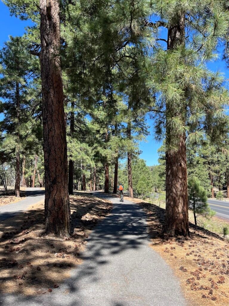 We were impressed by how well-maintained and graded the trail was the entire way. And we also saw zero other people. We couldn’t believe so many others were missing out on this seemingly hidden gem! This trail was pure, blissful Type 1 fun. The loop took us down into the canyons to the shade of the forest, which we were grateful for as the temperatures heated up.