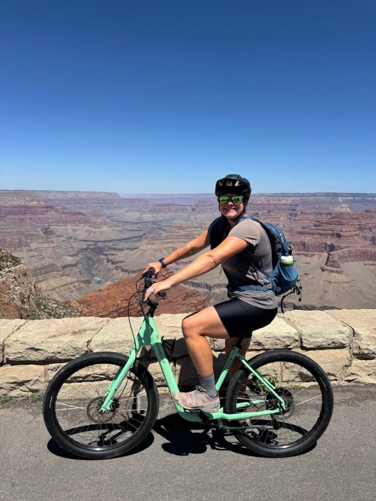 Hermit Road snakes its way along the canyon rim for 5.5 miles. Closed to public vehicular traffic, it is only used by park shuttles, making it the perfect place for a biking adventure. We made advance reservations (recommended) to rent 8-speed cruiser bikes for 5 hours from Canyon Adventures, located near the South Rim Visitor Center.