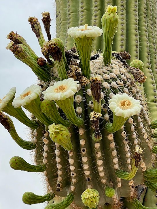 Saguaro only bloom once a year during May and June, and we completely lucked into seeing the blooms during our visit. The creamy white blossoms open at night and only remain open for the next day before permanently closing. That leaves them just 24 hours to attract a pollinator.