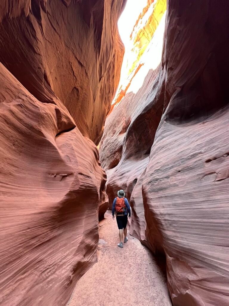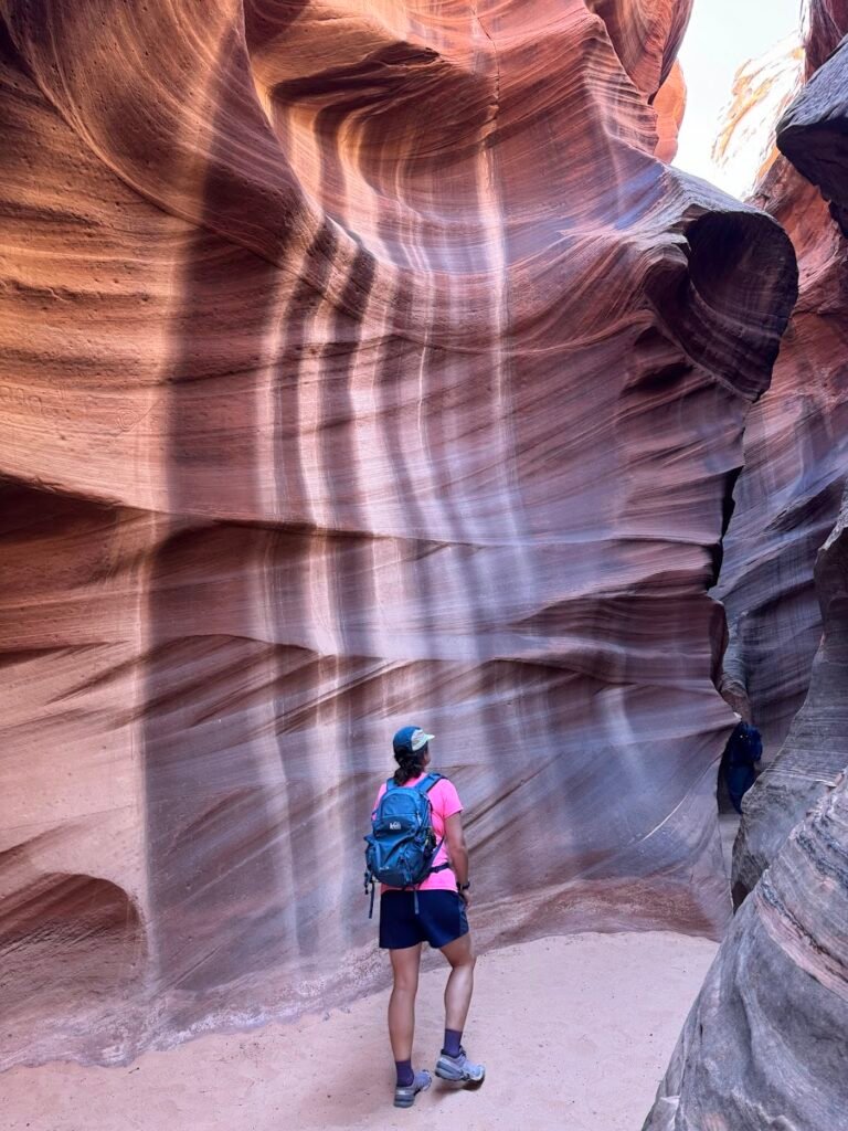 If you’ve heard of a slot canyon near Page, AZ, it’s probably Antelope Canyon whose light-filled, narrow passageways are the subject of many a beautiful photograph. Even though the canyon may only be visited by tour with a Navajo-owned company, we heard it’s ridiculously crowded.