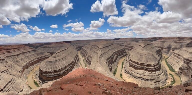 Although the photo may look like an optical illusion, it’s not! At the park’s overlook, you can peer into the abyss to see the San Juan River winding through the 1,000 foot canyon below. An excellent example of a river meander known as a gooseneck. As a result of this serpentine form, the river flows a distance of 6 miles while only advancing 1.5 miles west on its way to Lake Powell!
