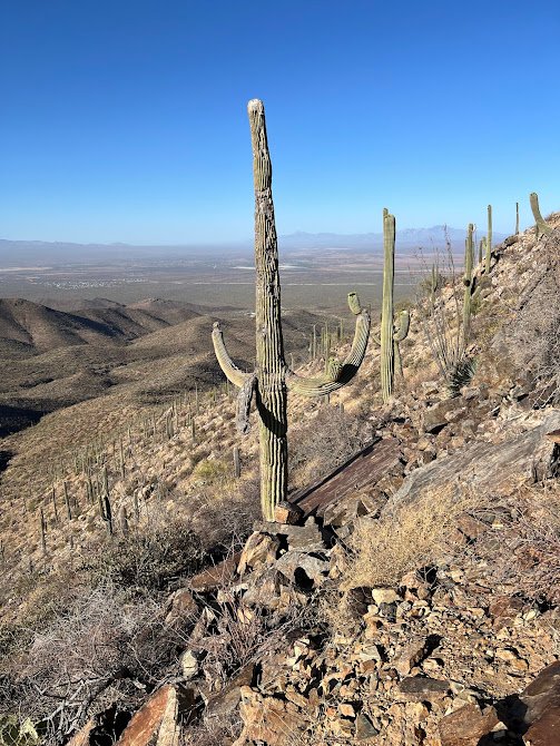 We spent our second day in Saguaro in the western park sector, and in the morning went on a hike to the summit of Wasson Peak. The trail started off a tiny bit boring in a rocky wash, but eventually reached a dense area of cacti with some of the tallest saguaro we’d seen to date (30 feet tall!).