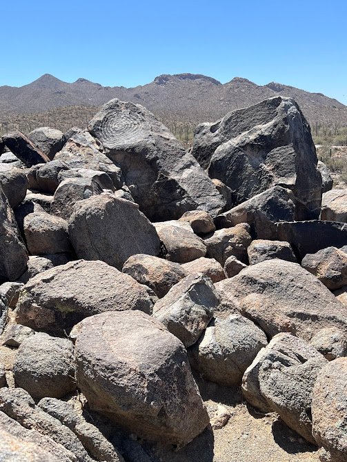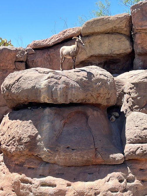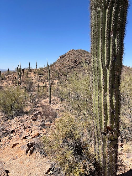 The trail steeply climbed up rocks and through varied cactus forests before reaching the ridgeline. We had the summit all to ourselves and enjoyed a snack before heading down, then eating a proper lunch in the shaded picnic area. We hiked 5.4 miles on this trail, gaining 1,545 feet in elevation. All told we were out there for 2.5 hours and glad to be done hiking by noon with the heat.