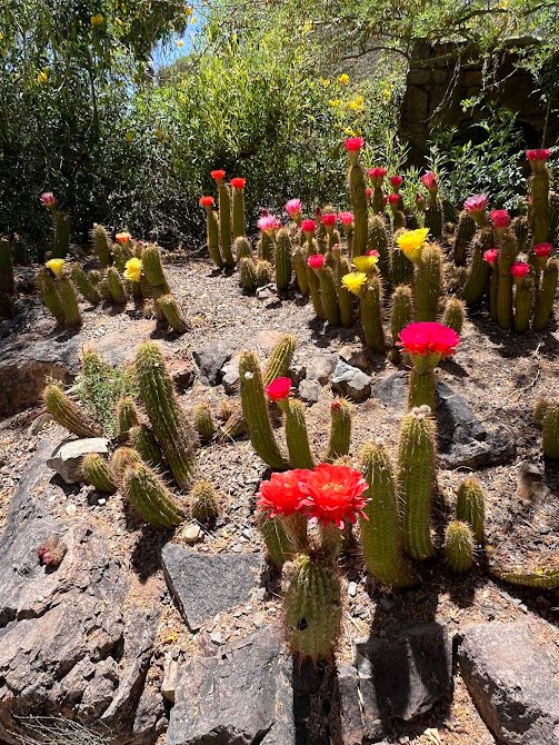 The gardens were divided into quarter-mile loop trails, each with a different focus. Here we got our first glimpses of giant saguaro cacti, native to the Sonoran Desert. We really liked how everything was laid out in the gardens in a seemingly natural environment. We particularly enjoyed the succulent garden and the indoor “orchid extravaganza” exhibit that was on display when we visited.
