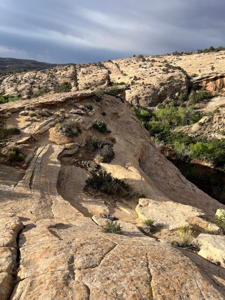 We hiked through low desert vegetation, dry washes, and up bluffs with great overlooks of the cactus forest below.
