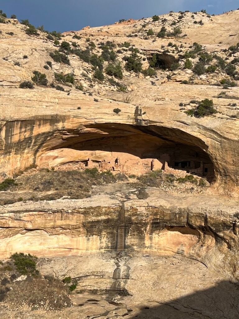 On the drive from Bluff, UT, to Natural Bridges National Monument there is a turnout for the Butler Wash Interpretative Site. Here, a short (<0.5-mile) hike takes you to the viewpoint for a cliff dwelling that was built and occupied by Ancestral Puebloans in the 13th century.