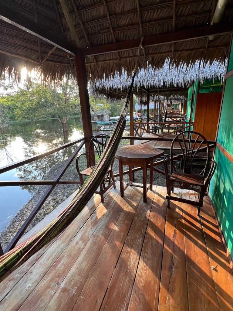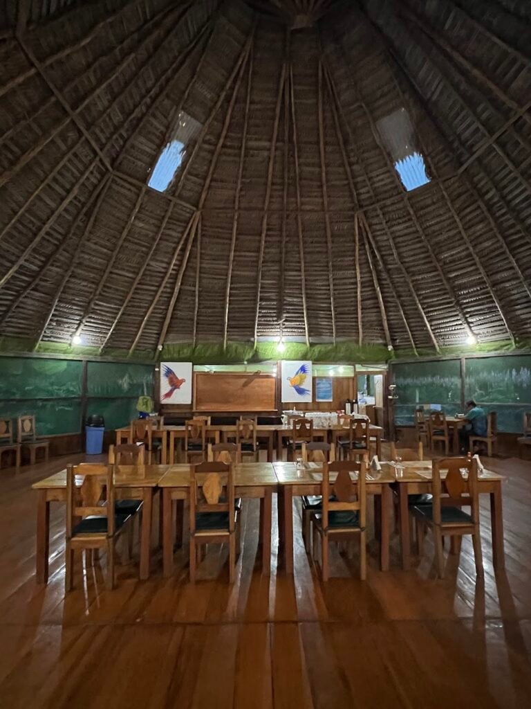 Considering we were in the middle of the primary rainforest in the Amazon, basically in the middle of nowhere, we were really happy with our accommodations. Our bungalow had a comfortable bed, tableside fan, and electric outlets so we could charge our devices. Each and every bungalow was riverfront, and had a private balcony with a hammock and chair and table set. There was another chair and table set indoors too. The bungalow had a private bathroom, including a shower, but no hot water due to the energy constraints of the rainforest.