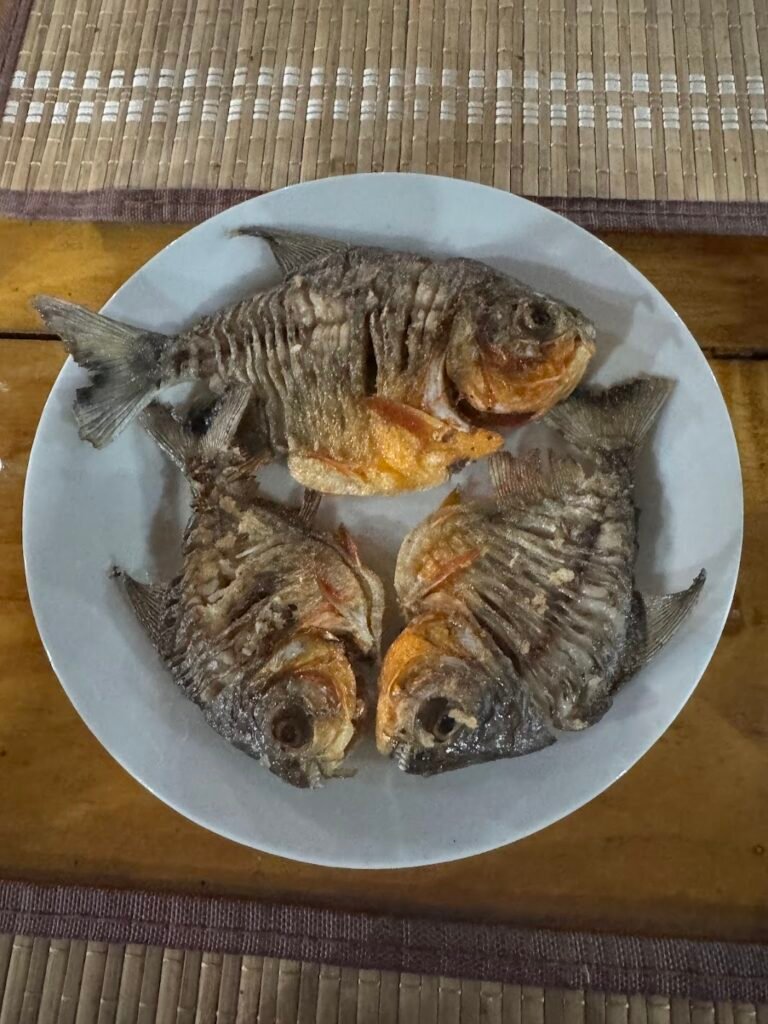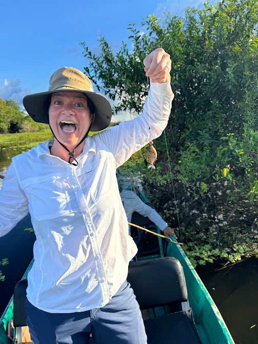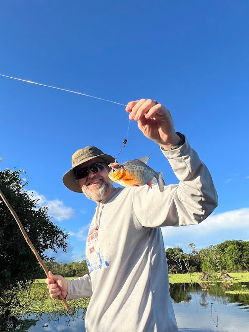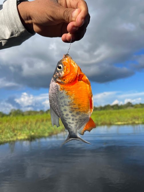 Piranha fishing: Piranha fishing was another of our favorite activities in the rainforest. We had the opportunity to fish at several different locations. Our setup was simple: a wooden pole, a short piece of fishing wire, and a hook baited with chicken pieces. We were instructed to splash the pole around in the water to attract the piranhas’ attention, then quickly pull up if we felt a bite. It took some practice, but we each had multiple catches, some of which were fried up as part of dinner later that day.